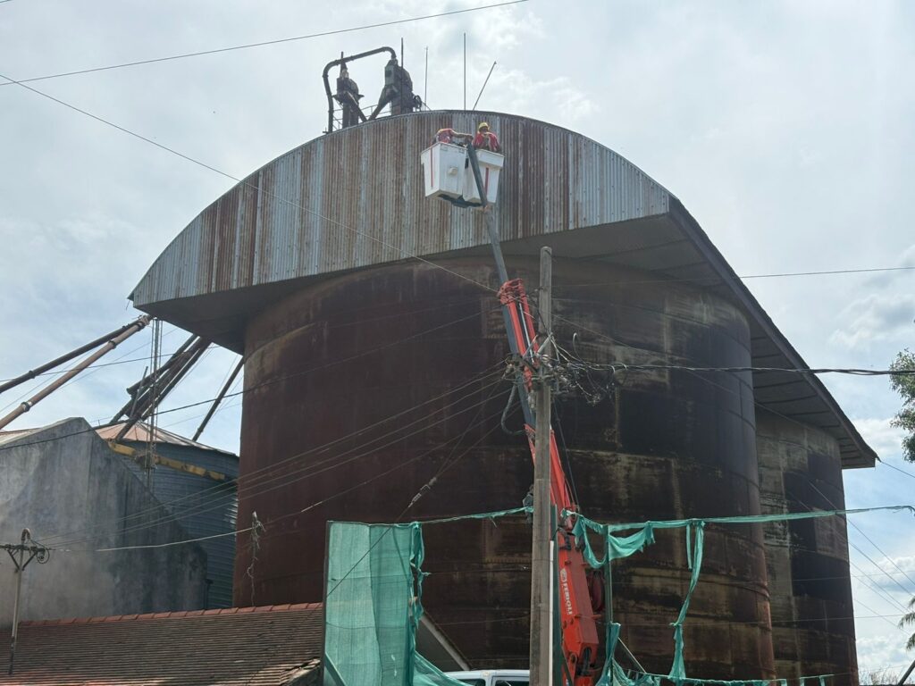 Esta semana comenzaron la tarea de remoción de las gigantes estructuras de los silos Amsler ubicados en Pellgrini y Fray Luis Beltrán, pleno casco urbano de Roldán.