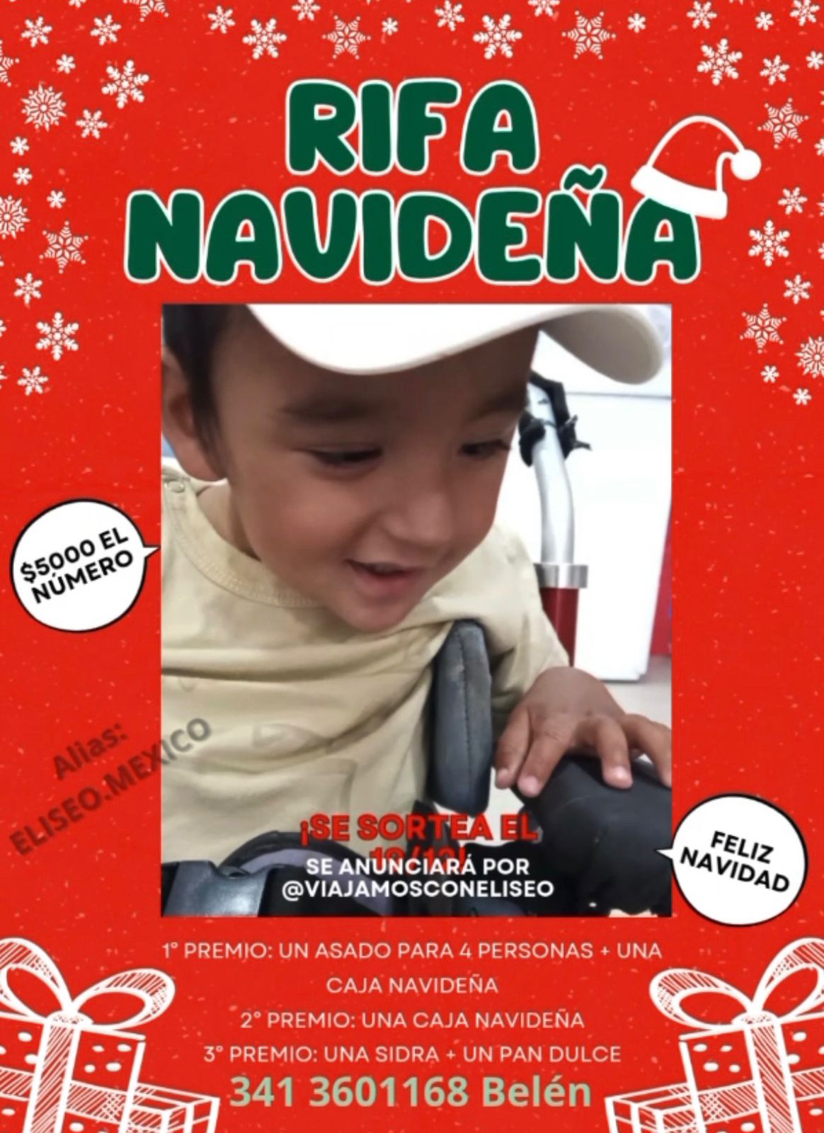 A la vez, existe la posibilidad de que la familia se presente en el programa “Buenas noches familia” que conduce cada noche Guido Kaczka, para que la colecta tenga alcance nacional y puedan juntar una parte de los fondos. Mientras tanto, puede colaborar con la rifa contactando con la madre de Eli, Belén, al 3413601168, o mediante el alias eliseo.mexico.