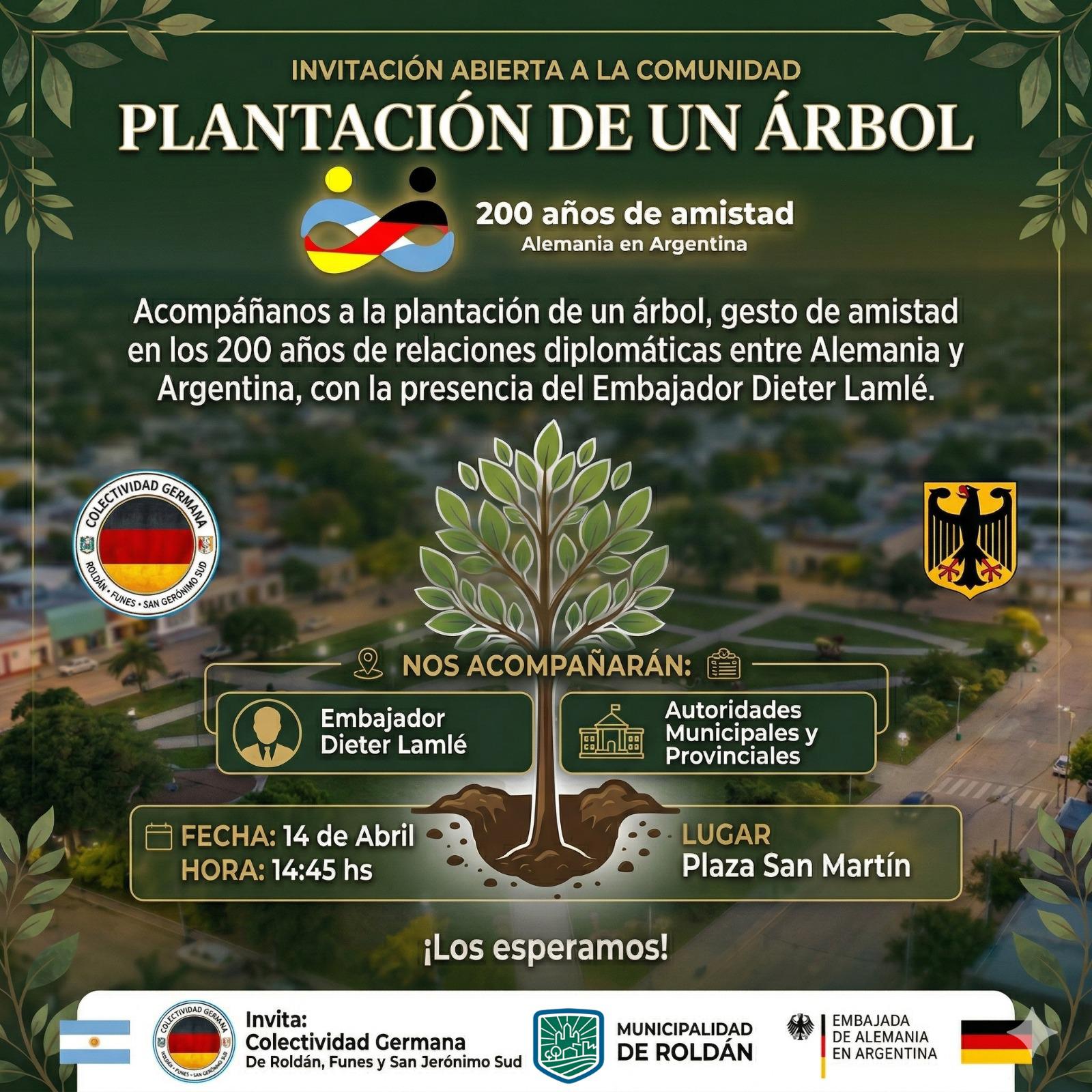 “La plantación de árboles en cada ciudad visitada por el Embajador constituye una forma de dejar una huella concreta, vinculada tanto a la historia compartida como a las nuevas generaciones. En este recorrido por el país, el Embajador viene realizando este significativo gesto en distintas localidades”, destacaron desde la colectividad germana local, quienes gestionaron la visita del diplomático.