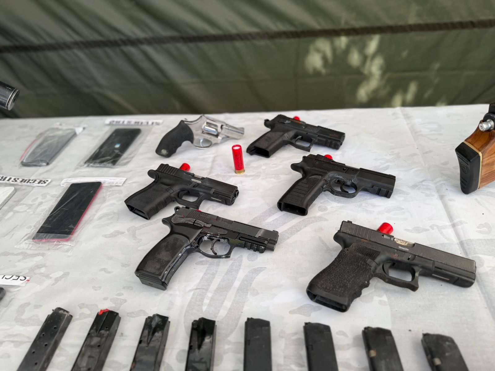 Entre el armamento secuestrado se encontraron pistolas calibre 9 milímetros y calibre .40, además de armas de marcas como Glock, CZ y Tanfoglio, consideradas de última generación. También fueron incautados dos fusiles calibre 5.56 y .223, de fabricación china y norteamericana, escopetas y otras armas largas. Bertolotti remarcó que se trata de armamento de alto poder de fuego y poco habitual en este tipo de procedimientos. Por su parte, la subsecretaria de Inteligencia Criminal, Virginia Villar, sostuvo que el resultado de los operativos es producto de un trabajo sostenido en materia de análisis e inteligencia criminal.